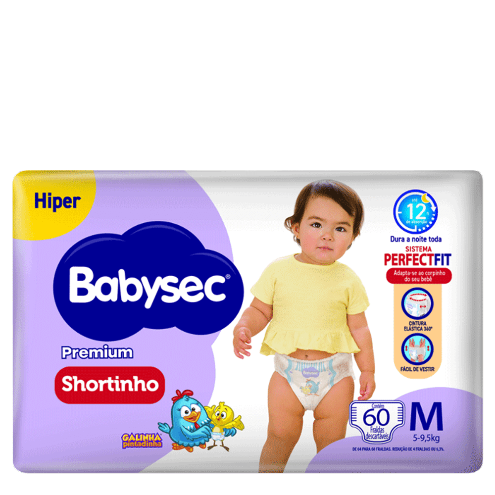 A Fralda Babysec Pants Shortinho Premium Mega oferece máxima absorção, conforto e praticidade. Seu formato tipo roupinha facilita na hora de vestir e garante ajuste perfeito ao corpo do bebê. Conta com cintura elástica 360°, toque suave e tecnologia de proteção prolongada, mantendo a pele seca e segura por mais tempo.